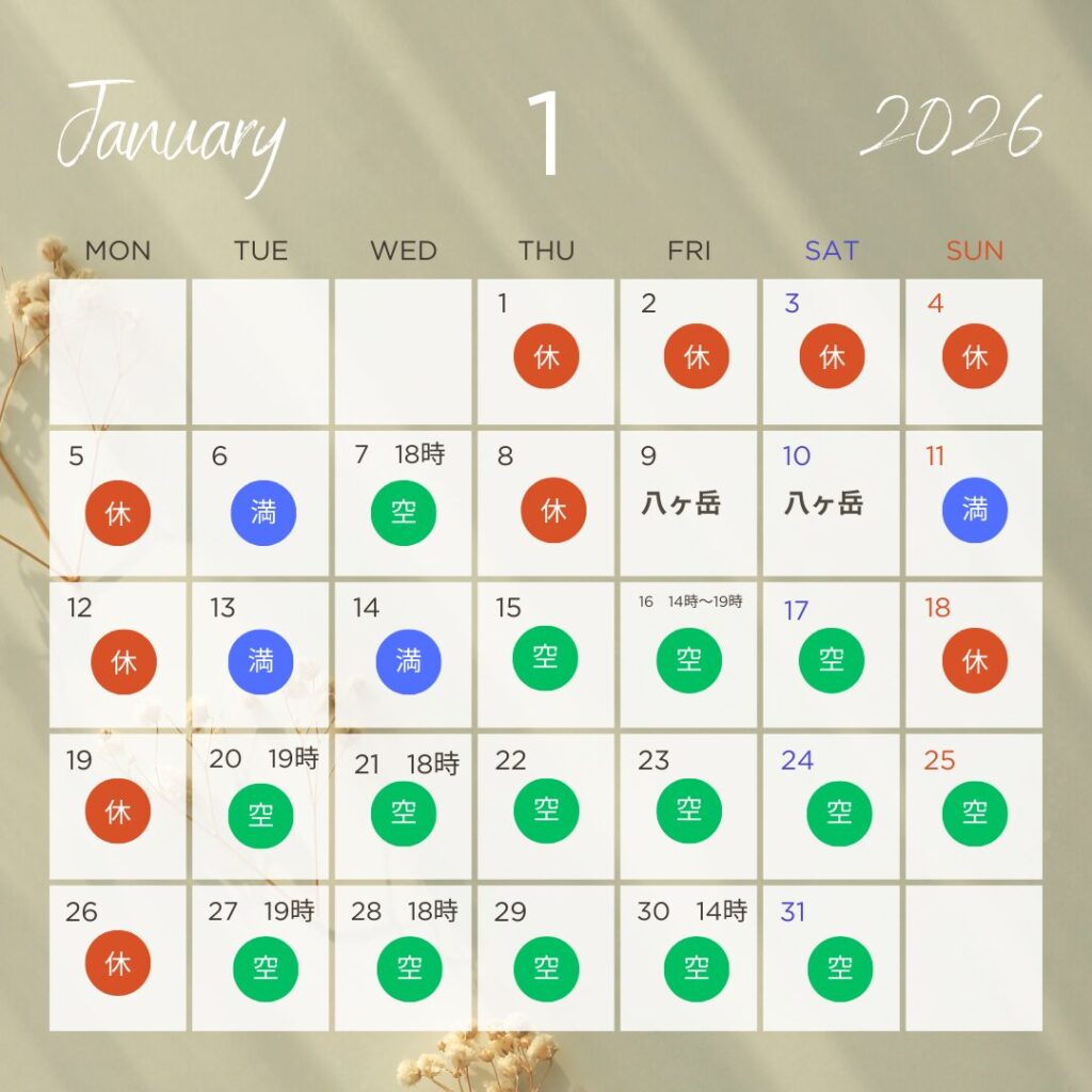 年内の空き状況は残り 23日 19時〜 のみとなりました。