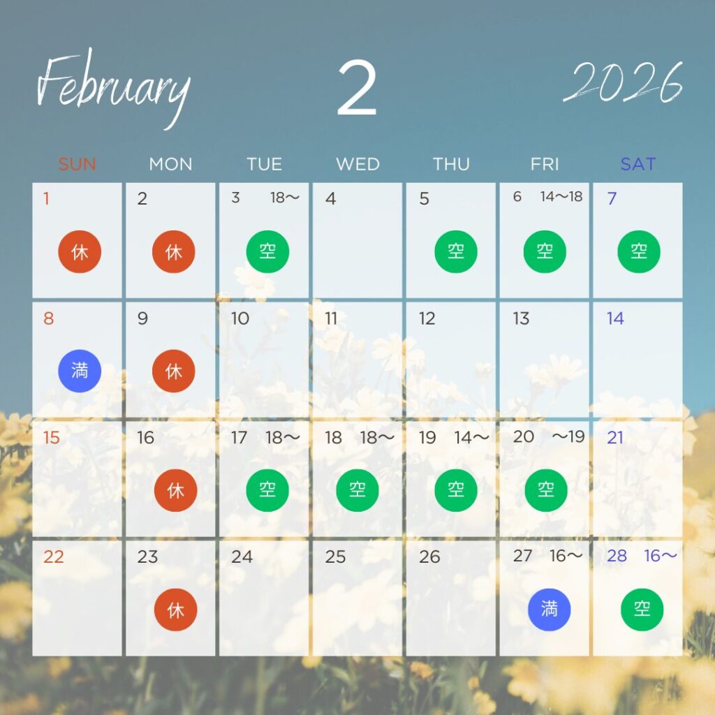 2月のご予約状況をお伝えいたします。