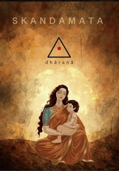 蓮の上に座り、4本の腕を持ち、息子スカンダ (カルティケー ヤ)を膝に抱いているスカンダマタ女神は、母性愛、養育、 そして精神的な成長を育む保護のエネルギーを象徴しています。