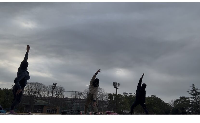 オールシーズン、朝の7時から金井公園にて行うヨガ。朝日を浴びながらのヨガは爽快感、清々しさ、活力の増強、自分軸の確立、心の安定にとても良し!